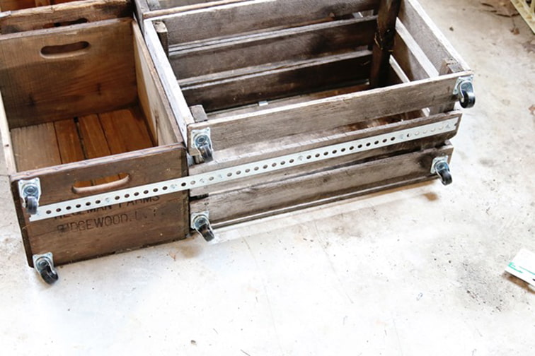 - Crates: These are easy to find at flea markets, fruit and vegetable stores, or custom made.