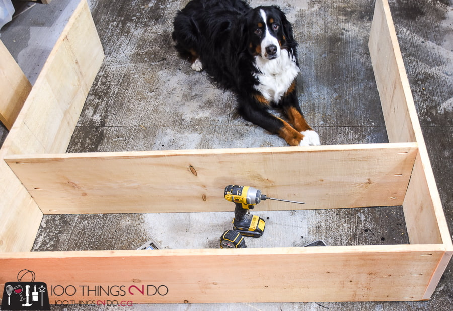 2. We start assembling the frame from the bottom base, screwing the screws at an angle. Three bindings per side are sufficient.