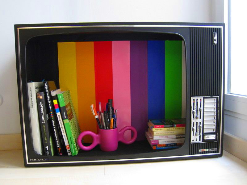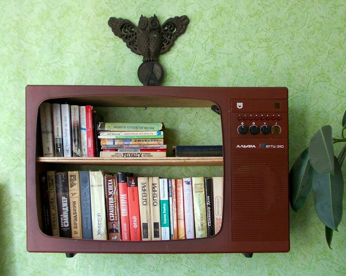 Which is better - a book or a TV? Now there is no need to argue about this. A wooden or plastic case from an old device easily turns into a book shelf: no special processing after parsing is required - you just need to add one more shelf inside.