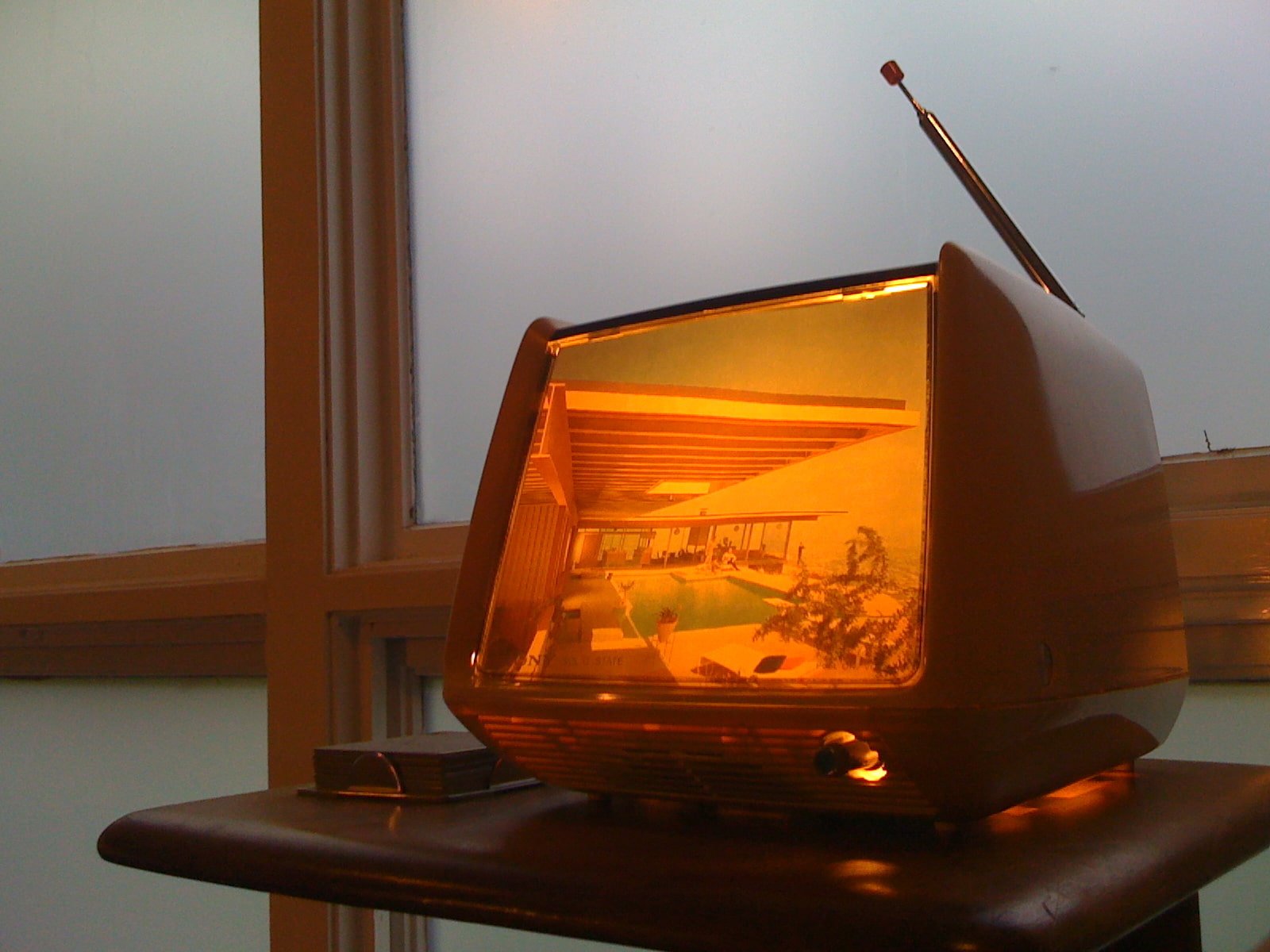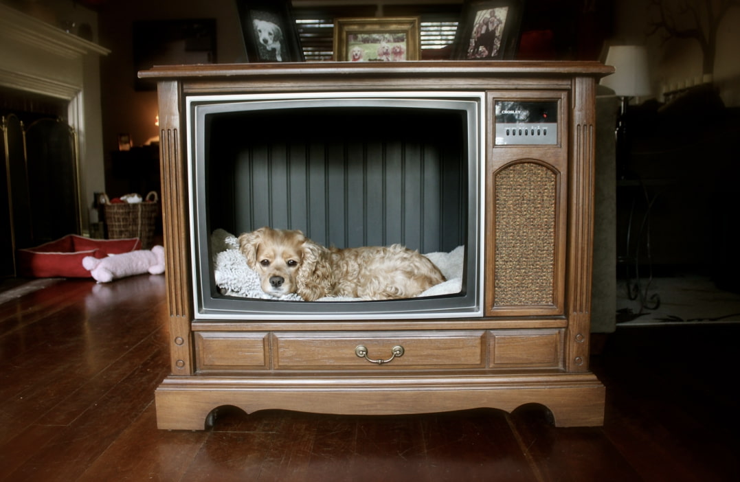 You can decorate it at your discretion - wallpaper, self-adhesive, paint. On a larger TV, you can arrange a bed for a small dog.
