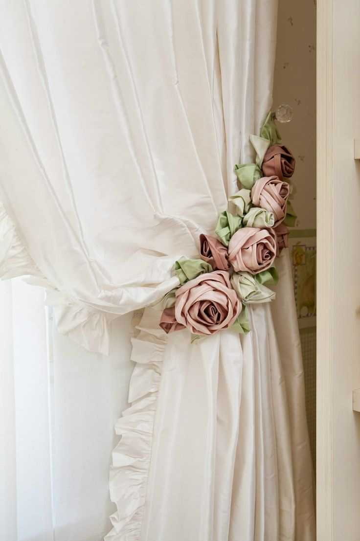 Floral decor can be found not only at holidays and celebrations, but also in the homes of lovers of garden beauty. Flowers are made from fabric, paper, cold porcelain; with due diligence and experience, they make up realistic compositions, decorating curtains.