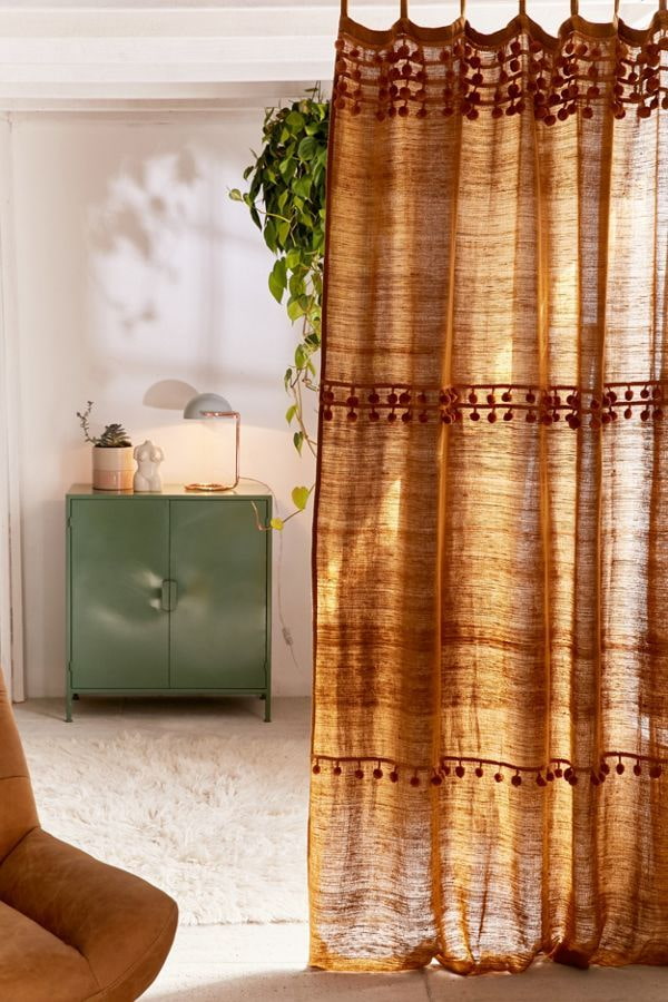 Choose a matching braid with pompoms, or make a fringe with your own hands and wash it over the curtains. The result will certainly delight you - with such an addition, boring curtains look much more interesting, they look bold and at the same time elegant.