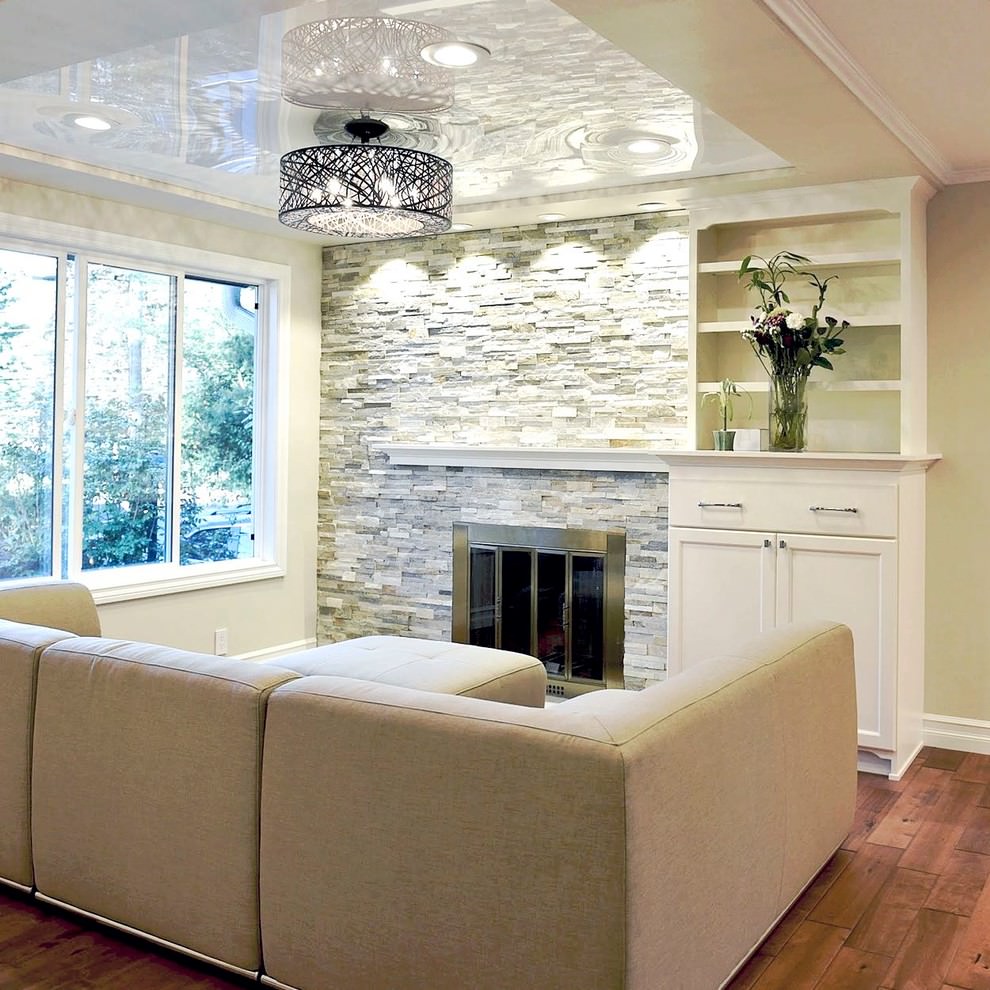 Lighting plays an important role in creating a comfortable atmosphere and productive work. When choosing a chandelier, it should be borne in mind that the power should be no more than 50 kW, the design of the chandelier should not get very hot, the shades should not be directed to the canvas, sharp parts of the lighting device can break the ceiling. It is better to pay attention to spotlights, hanging chandeliers for central lighting, LED lighting.
