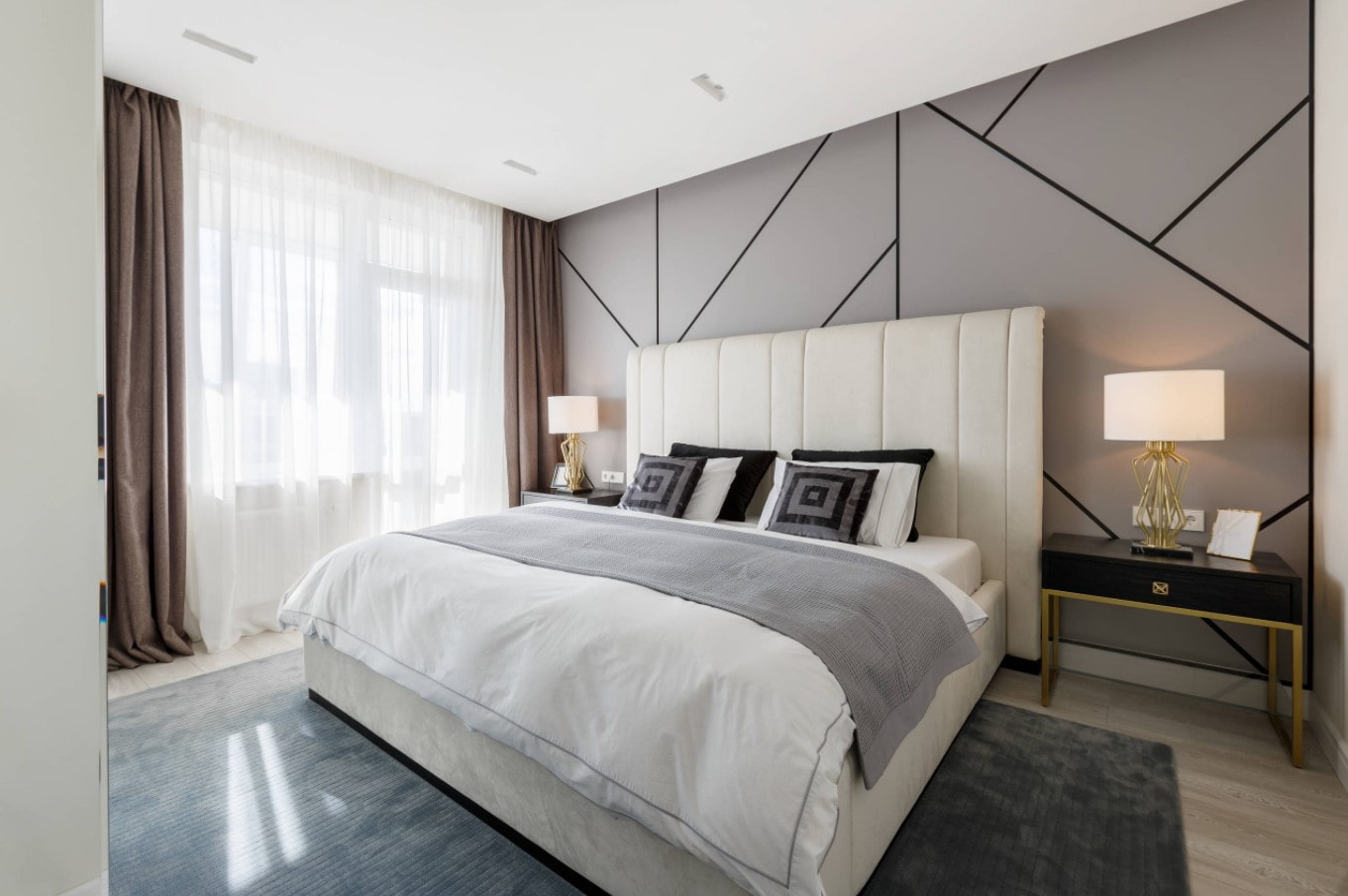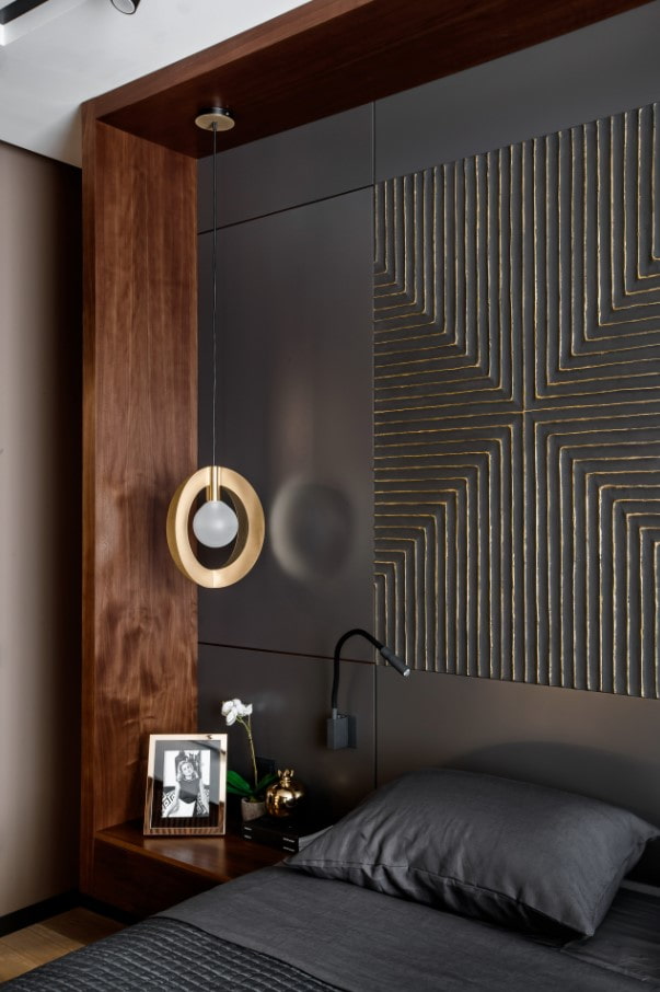 Wall, open to creativity, is located behind the bed. MDF performs both a decorative and a protective function - for example, by placing a bed without a headboard, you can not worry about damage to the wall from constant touching.