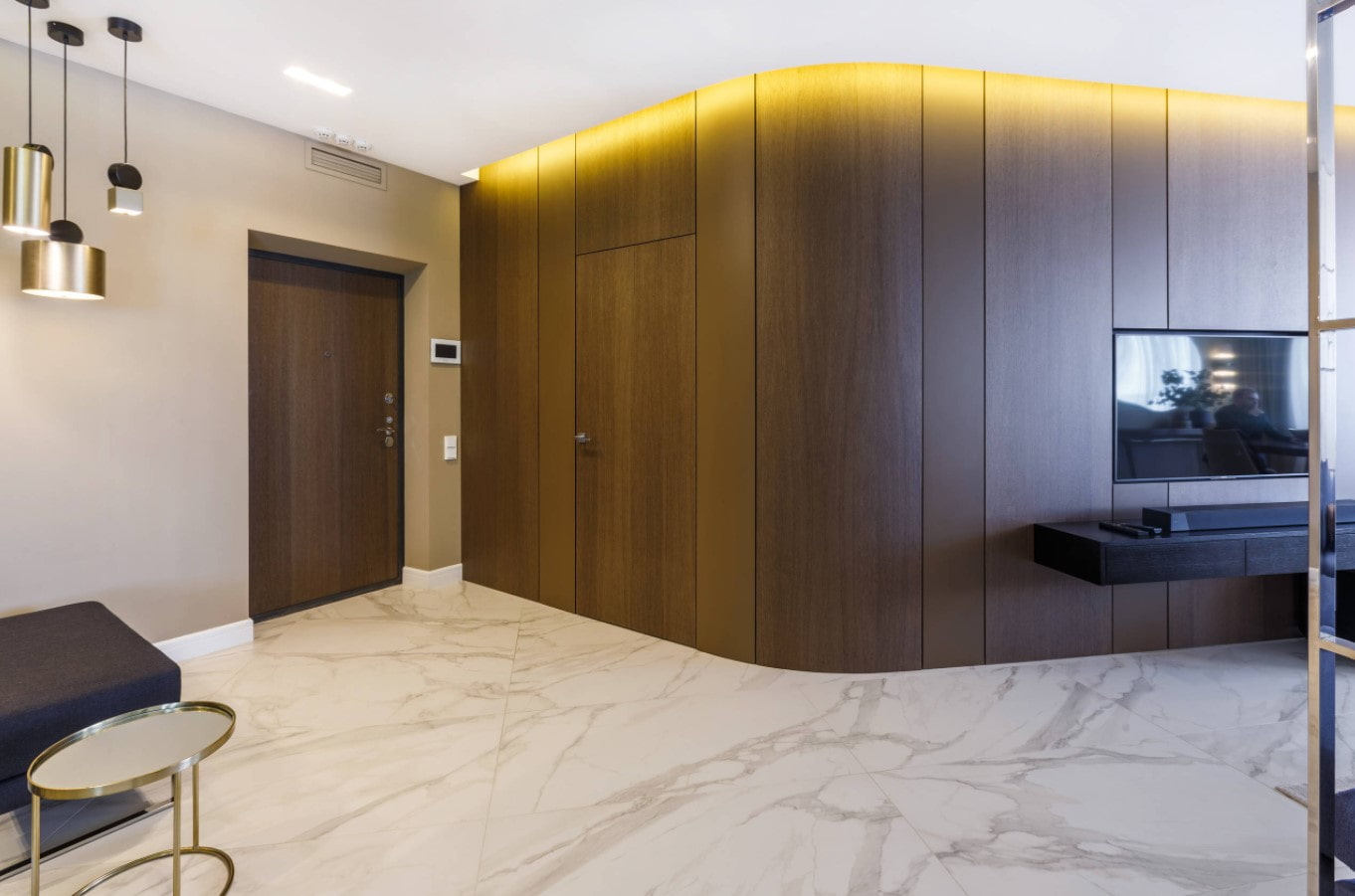 As for functionality, wall slats are indispensable near the front door. They endure dirt from boots, shuffling with jackets and umbrellas, blows from a bag or a stroller.