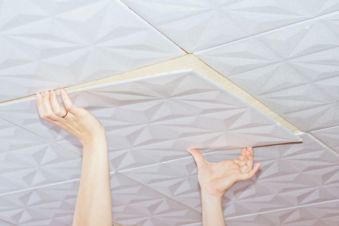 Before installing the tiles on the ceiling, prepare the surface to which you will attach them. Since the weight of each ceiling tile is very light, it does not require strong adhesion to the ceiling surface. But if whitewash remains on it, it is better to eliminate its remnants, otherwise, over time, the tile may fly off. It is also better to remove too large irregularities. This is done in the following order:
