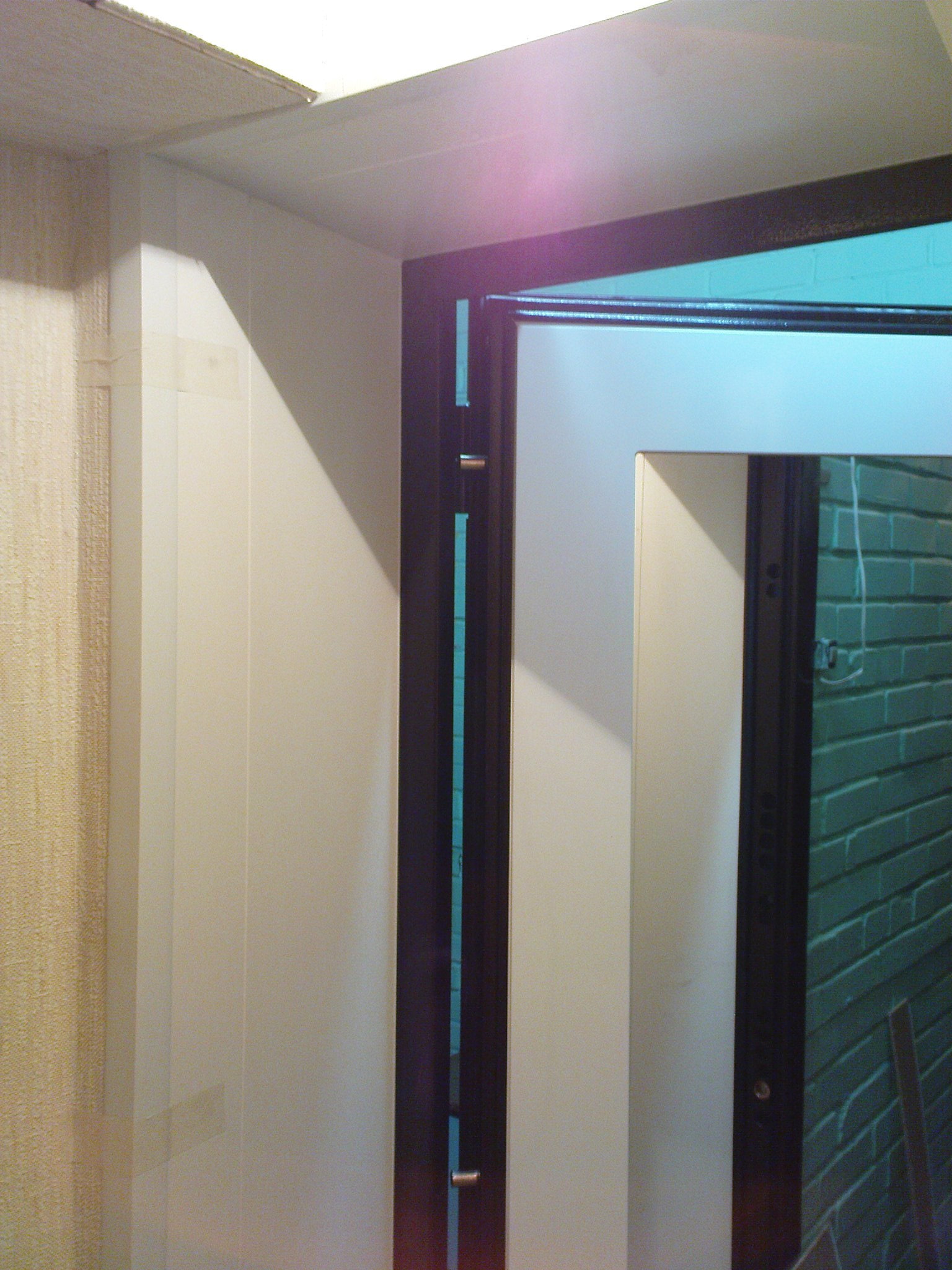 Plastic is the easiest way to make slopes on the front door with your own hands. They are inexpensive, differ in a huge selection of colors, can be attached to a sealant or frame, while both methods do not require perfectly aligned walls - the main thing is to close up the main large holes.