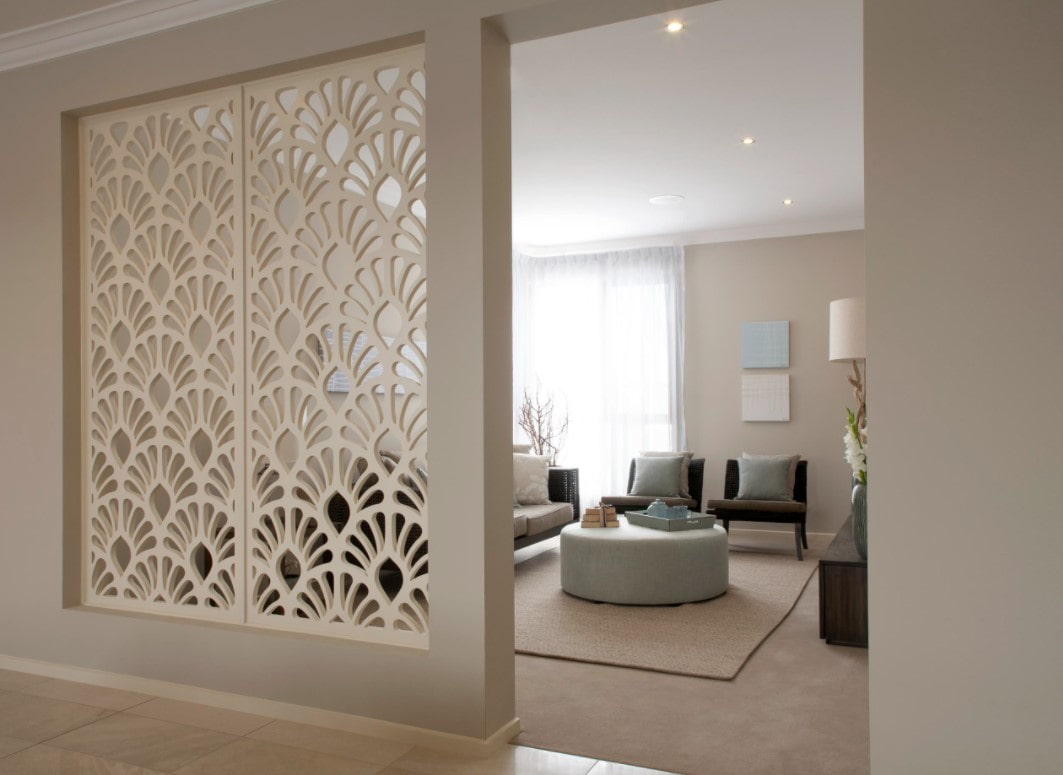 Interroom partitions from drywall can perform not only the role of dividing open space or room zoning, but also to solve additional functional tasks or simply decorate the room.