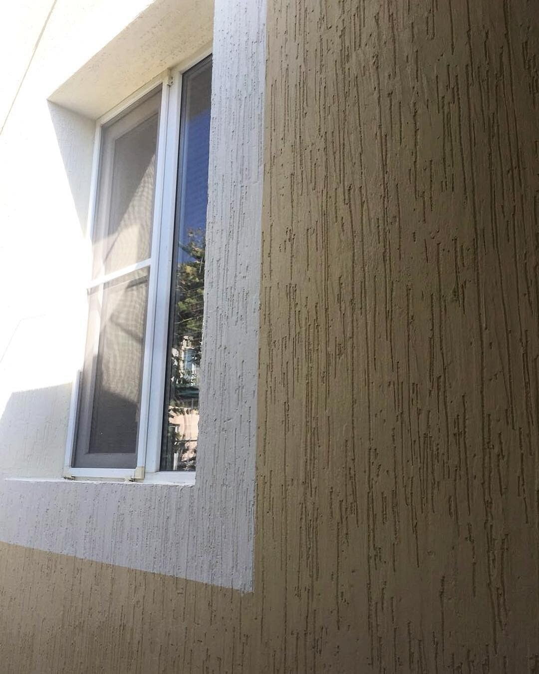 Be sure to level the walls from the outside, removing large irregularities. Then coat with soil suitable for outdoor use. When the primer is dry, apply the bark beetle (pictured).