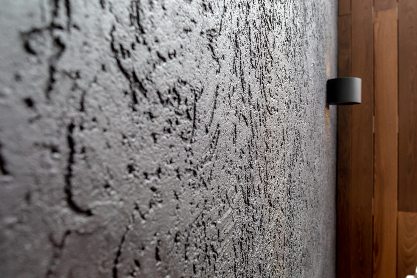 The characteristic texture is achieved due to the special composition: inside the dry mixture there is a finely dispersed homogeneous base and large granules, the movement of which creates furrows. The sizes of large chips determine the depth of the lines and the thickness of the layer, and their number determines the density of the pattern.