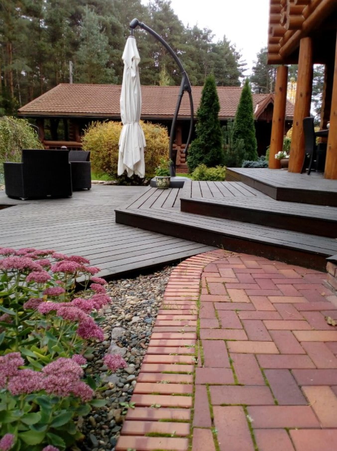Decking is an excellent option for finishing paths. The tree fits well into the environment, and washing it, unlike the same stone, is much easier: it means that your paths will always look aesthetically pleasing.