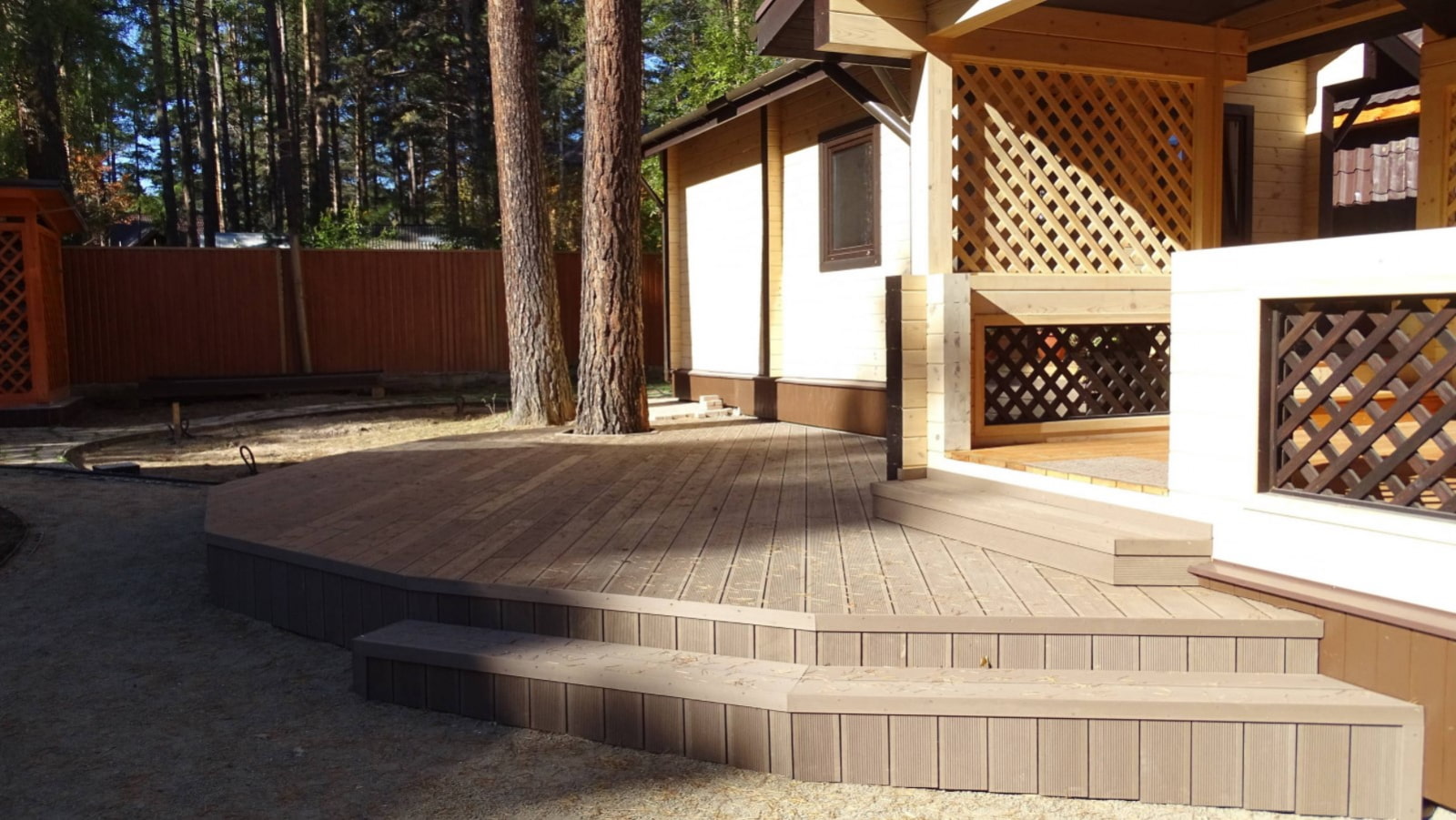 As the name suggests, decking is literally created for terraces! The coating, resistant to sun, temperature and humidity, fits perfectly into the landscape design and creates a cozy atmosphere near the house.