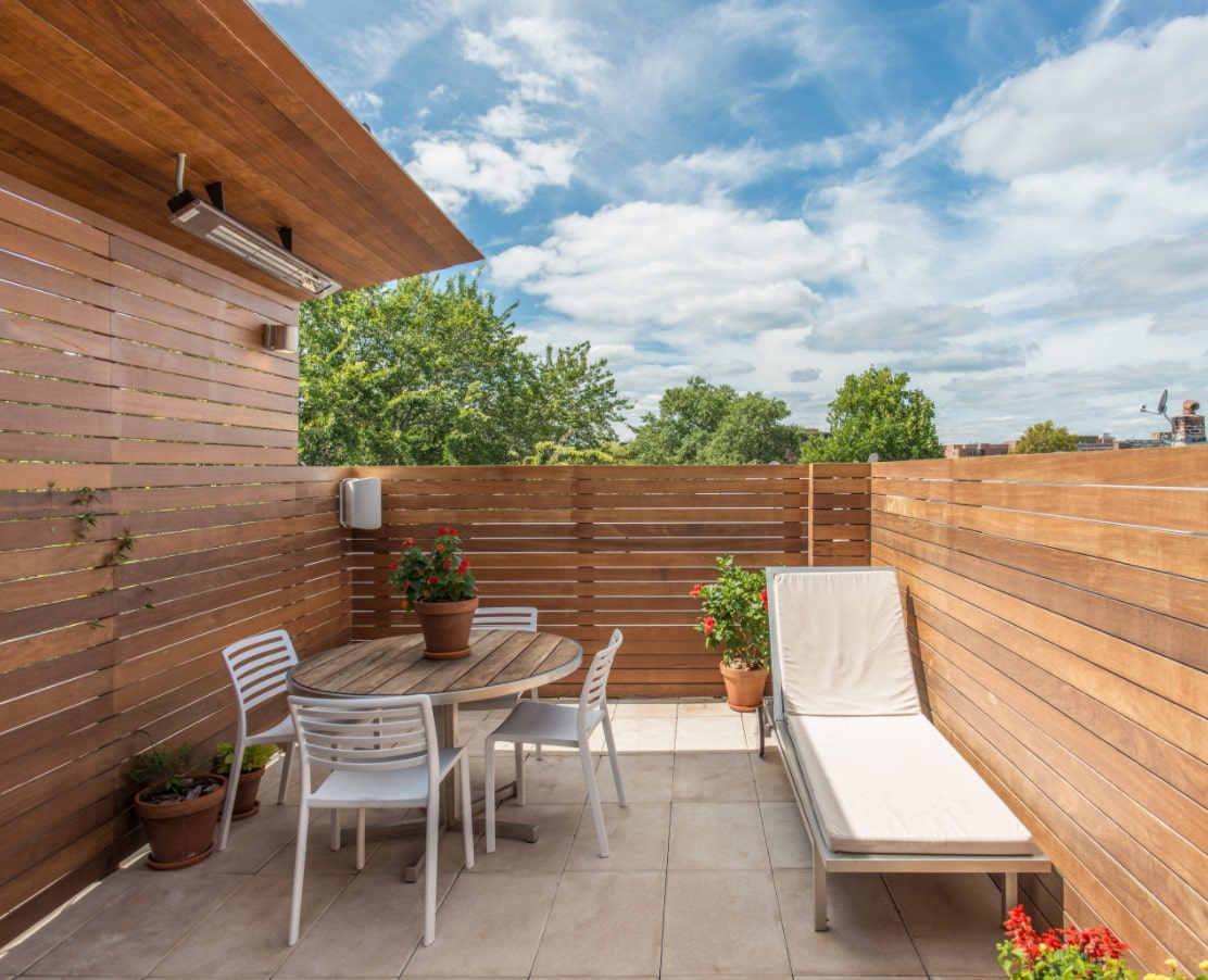 In the photo, the decoration of the terrace with decking