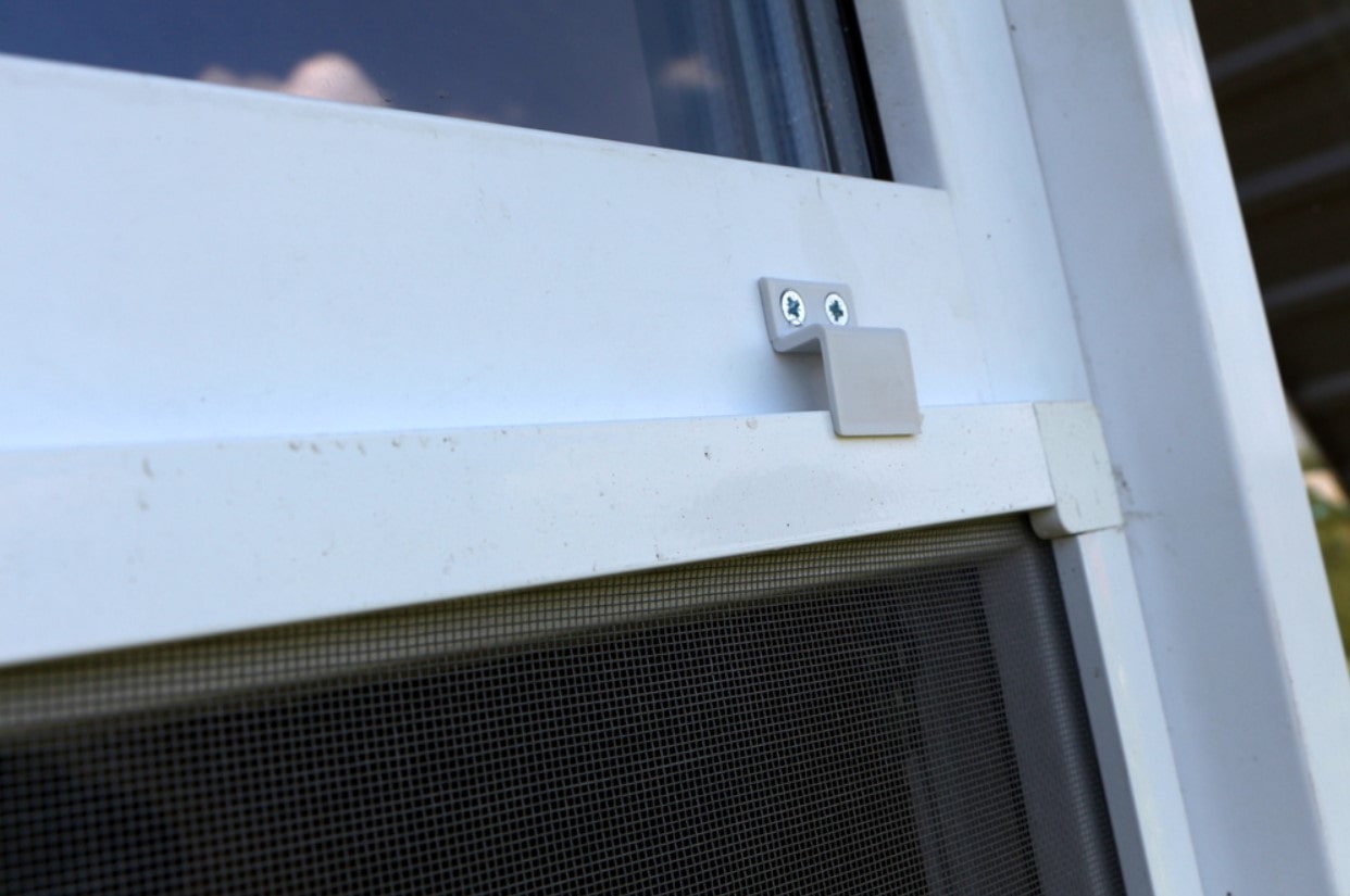 - Holding the handles, pull the mosquito out of the window, hook the upper mounts over the edge of the frame, lift it all the way.