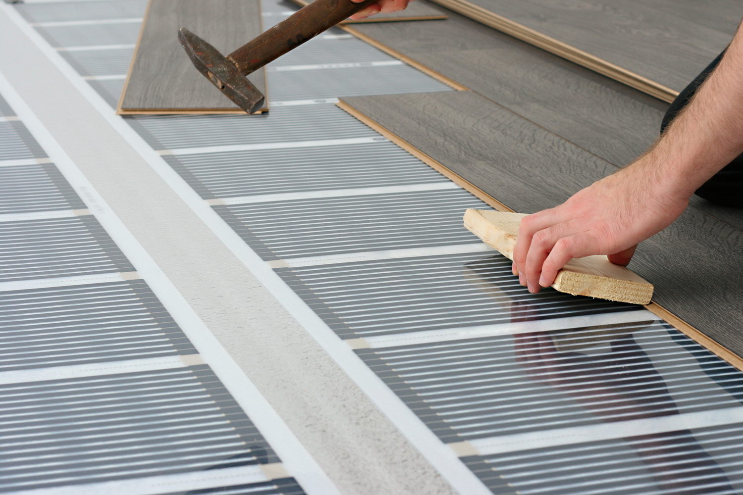 For laying laminated material on a warm floor, check for the presence of a special indicator on the package - not all lamellas are suitable for such a base. At the same time, after the completion of the laying work, the underfloor heating system cannot be switched on to full immediately. You need to start with a low temperature, daily raising the value by 2-3 degrees - so the laminate will gradually get used to it and will not be able to swell.