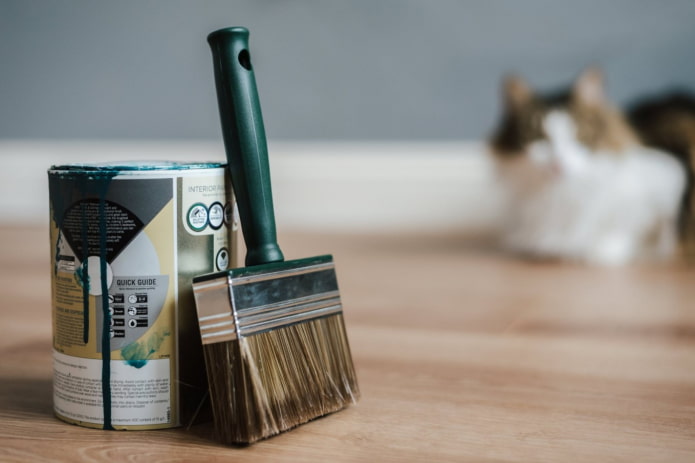 If a cat lives in the house, use silica gel litter for her litter box to remove paint odors. This is a proven liquidator of odors and excess moisture, so in this case you can trust the professionals and not do anything yourself.