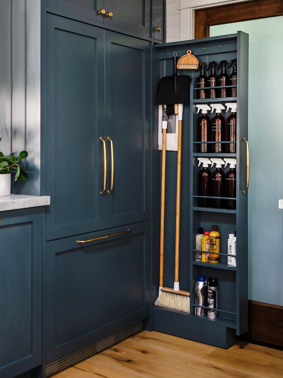 Even in a small size, you can find many ways to organize the storage of cleaning tools, you just need to let your imagination run wild and use all possible places. In some cases, you have to be smart and do something with your own hands, and in others, you just have to allocate a separate place for technical needs.
