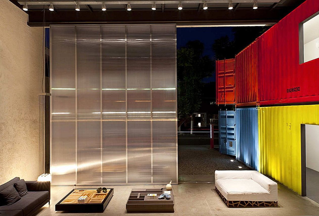 Six shipping containers, stacked on top of each other, turned into a narrow and tall structure, which became the basis of the dwelling. As a result of the unusual design, the living room has become the centerpiece of the house. "Smart" sliding doors act as walls when closed, and when open, they unite the interior with the street. The house is equipped with ecological drainage and water supply systems.