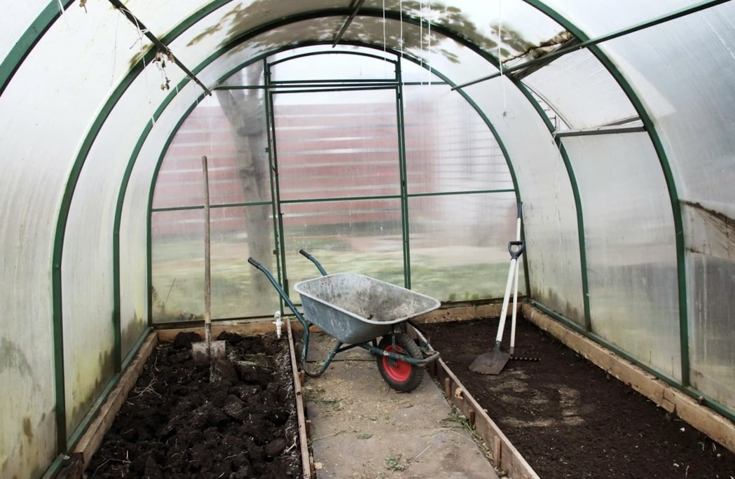When the temperature rises above freezing, wash the inside of the greenhouse - choose warm and dry weather for this. Disinfect the building with chemical or biological compounds and disinfect the soil. After that, replenish trace elements with organic and mineral fertilizers.