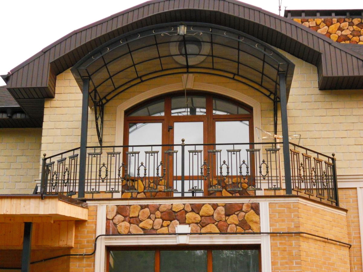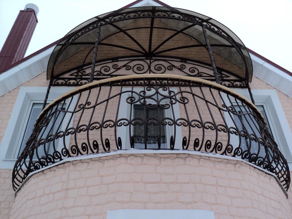 An open balcony structure of a semicircular shape will attract the eye with its magnificent design. A railing and a canopy with artistic forging will add even more elegance to the structure, and turn the balcony into a bright area for relaxation.