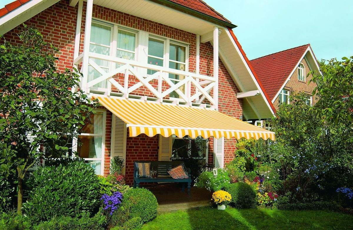 In the photo there is a loggia in a private house, decorated with a fabric awning of the marquis.
