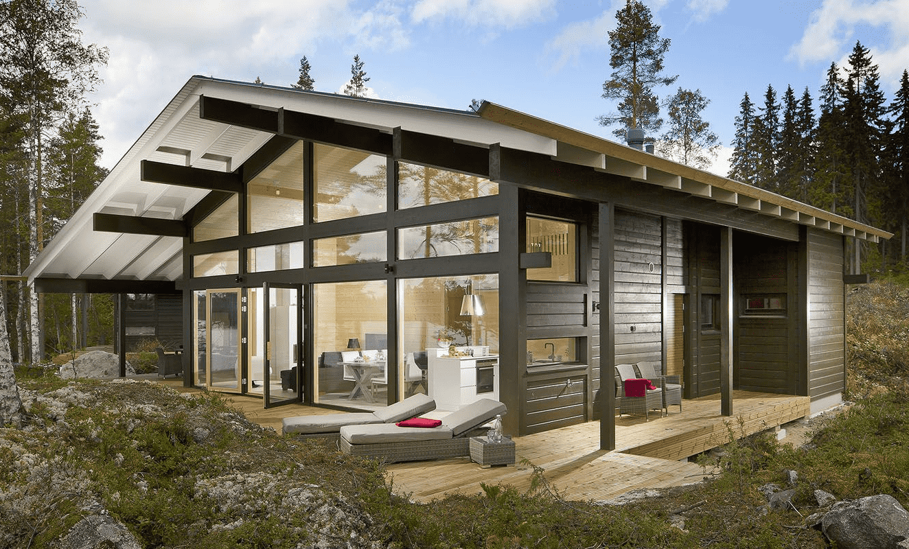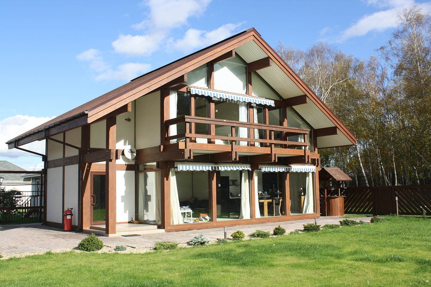 Construction originated in Germany. Houses built using German half-timbered technology have their own distinctive features. On the facade, due to the combination of beams and rafters, unique frame structures are formed. In many projects, a contrasting color combination is used, when dark decorative elements are located on a white background. Panoramic glazing is encouraged to provide plenty of natural light. There is always a home in the cottage.