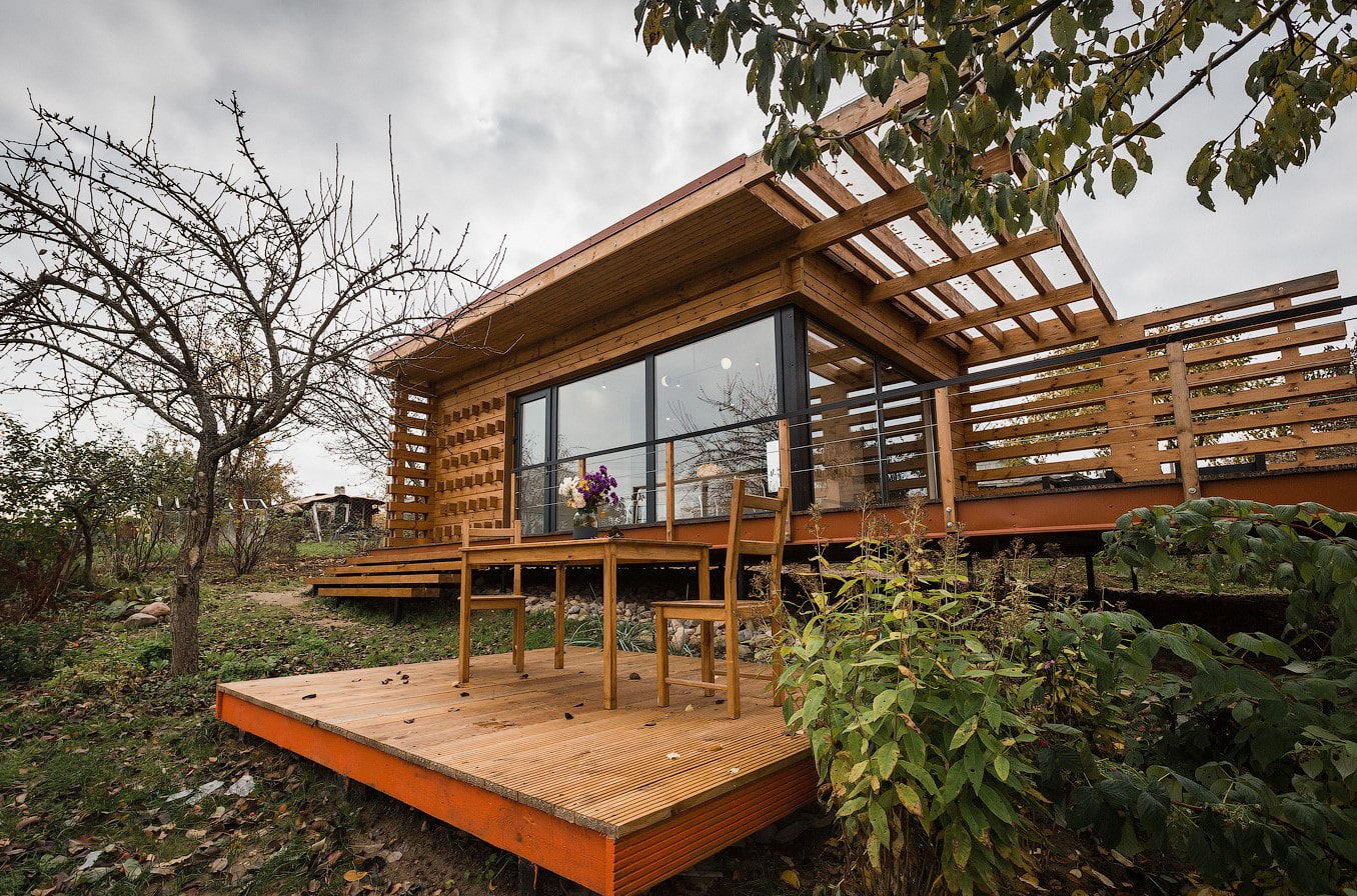 The laminated veneer lumber cottage is lightweight and has minimal shrinkage. | |
