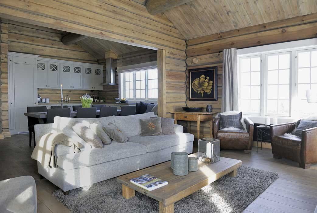 The photo shows a small living room in a Norwegian-style house.