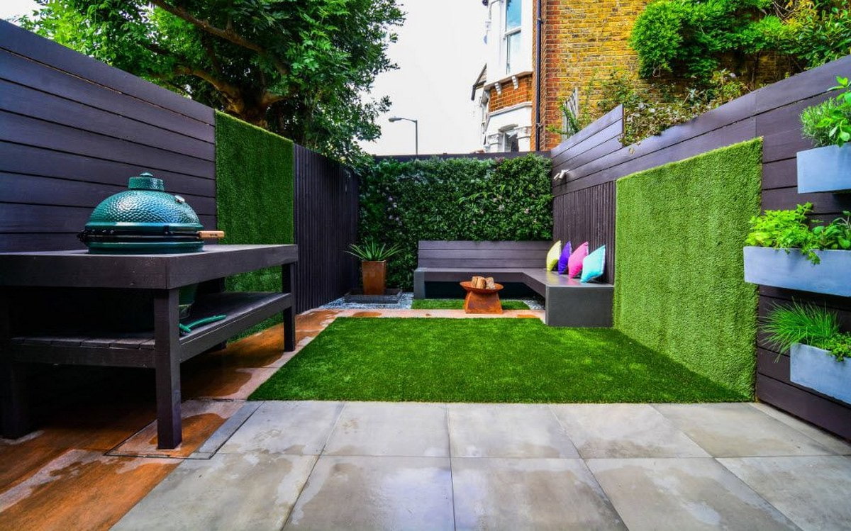 This is the most popular option for those who design a small area. Alcove provides comfort, shelters from the sun and rain. For a small courtyard, a lightweight construction without walls is suitable: it looks more "airy" and does not eat up the space.