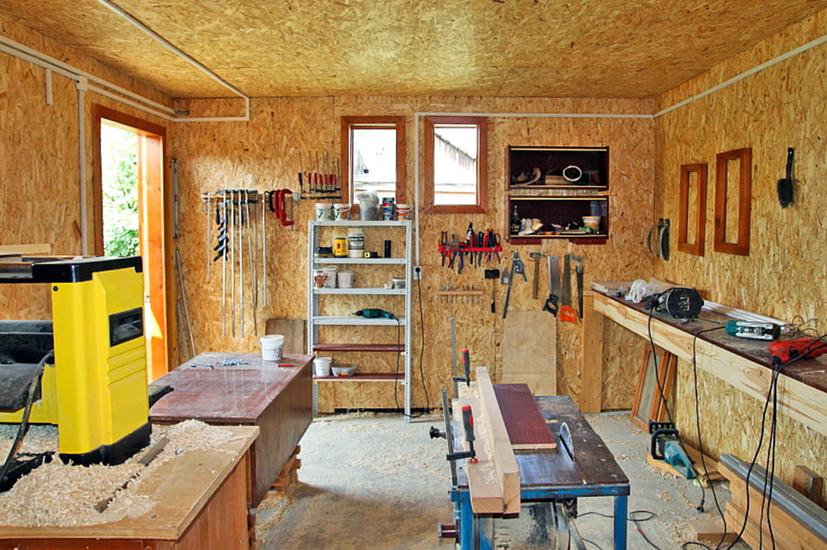In addition, if the building is located in the depths of the site, the noise from the power tools will not interfere so much. To equip a workshop, it is necessary to provide the room with electricity, storage racks and a workbench.
