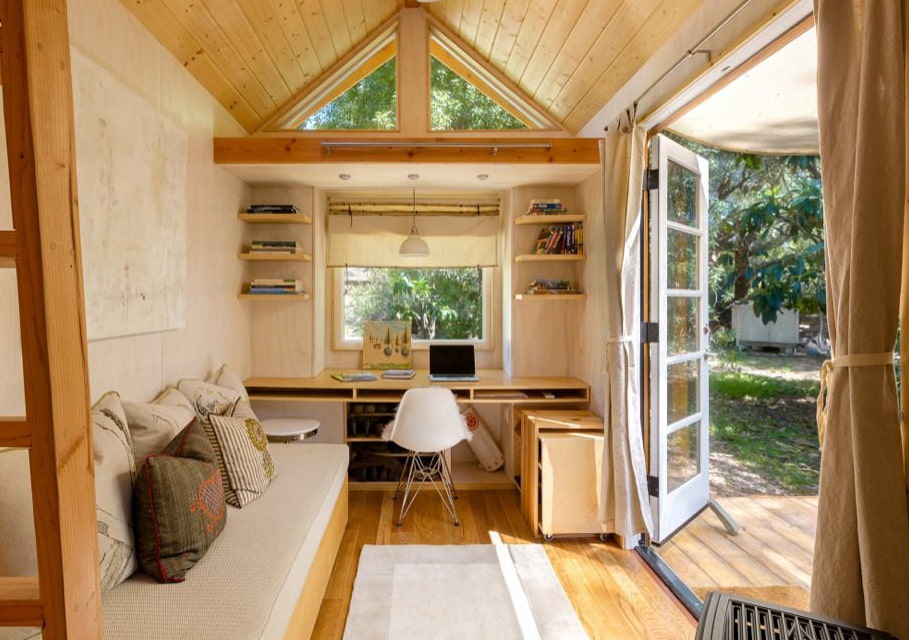 The barn can be easily converted into a home office - an ideal solution for those who continue to work even in the country. For convenience, we recommend placing a table and a chair in the house, as well as hanging curtains that will protect the laptop screen from the bright sun. An office in the garden will allow you to work alone, without being distracted by the hustle and bustle of the house.