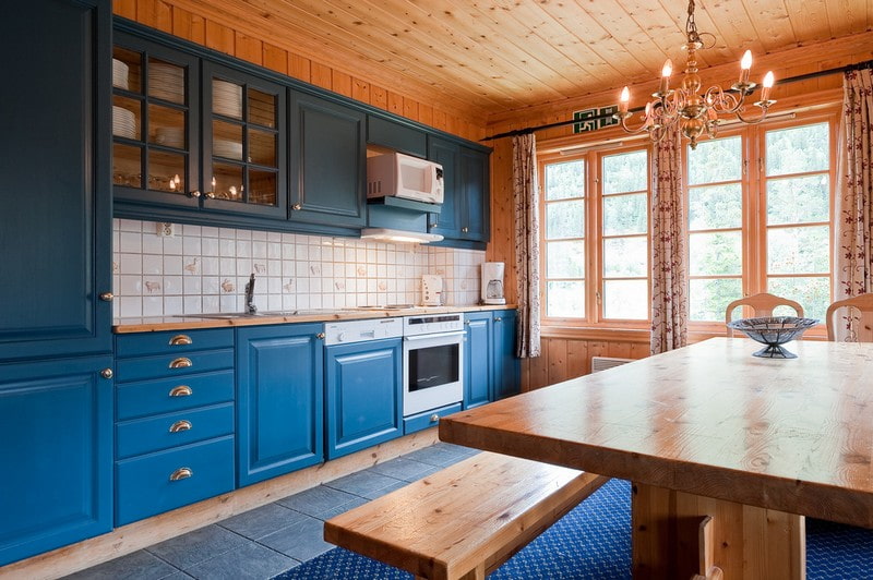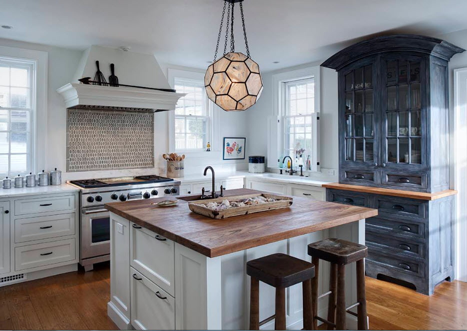 Particular attention should be paid to the choice of household appliances. It should be combined with each other and harmoniously fit into the atmosphere of the house. Appliances can be either to match the kitchen set or act as an accent. Built-in appliances allow you to visually minimize the number of household appliances, emphasizing the privacy of the cottage.
