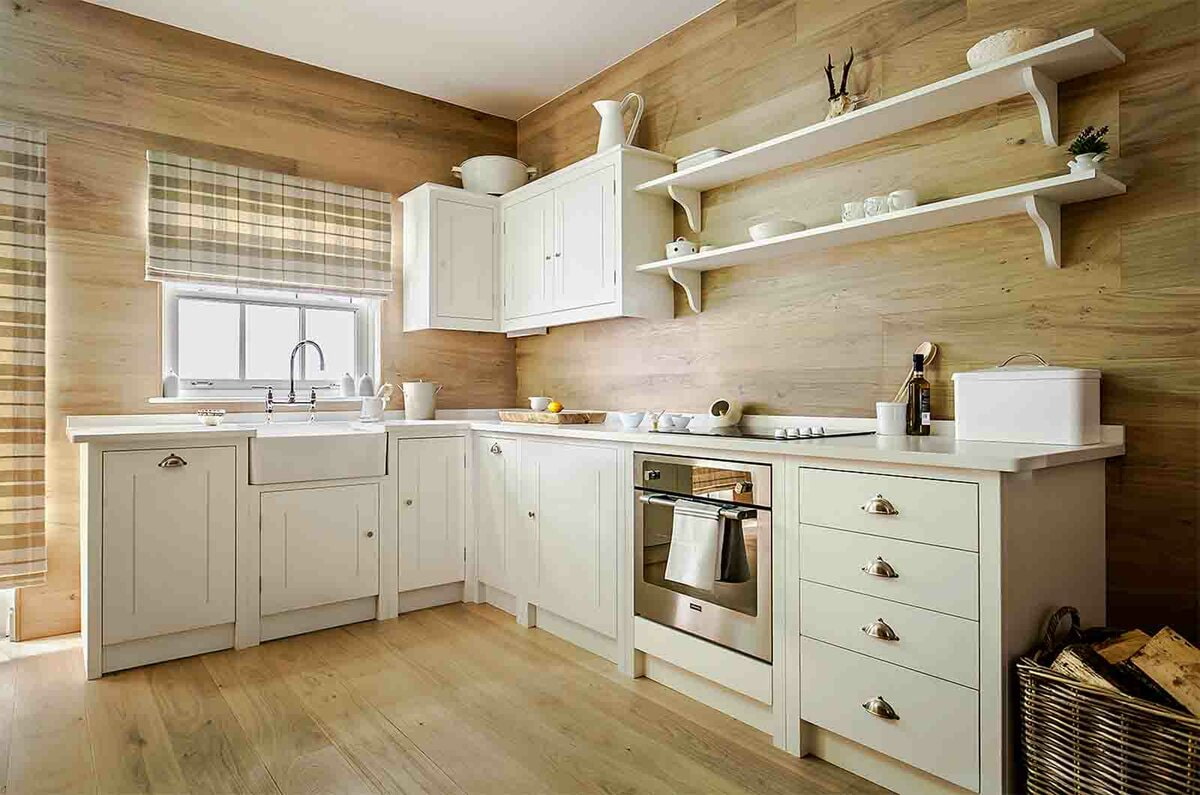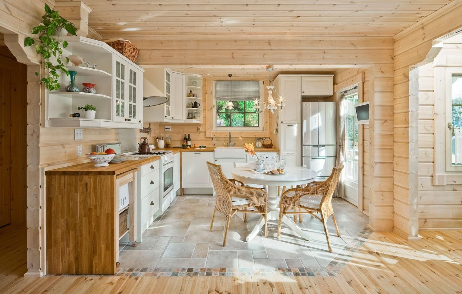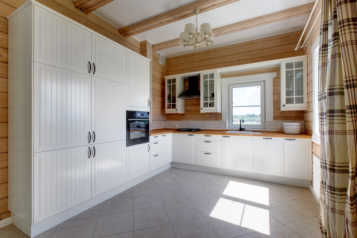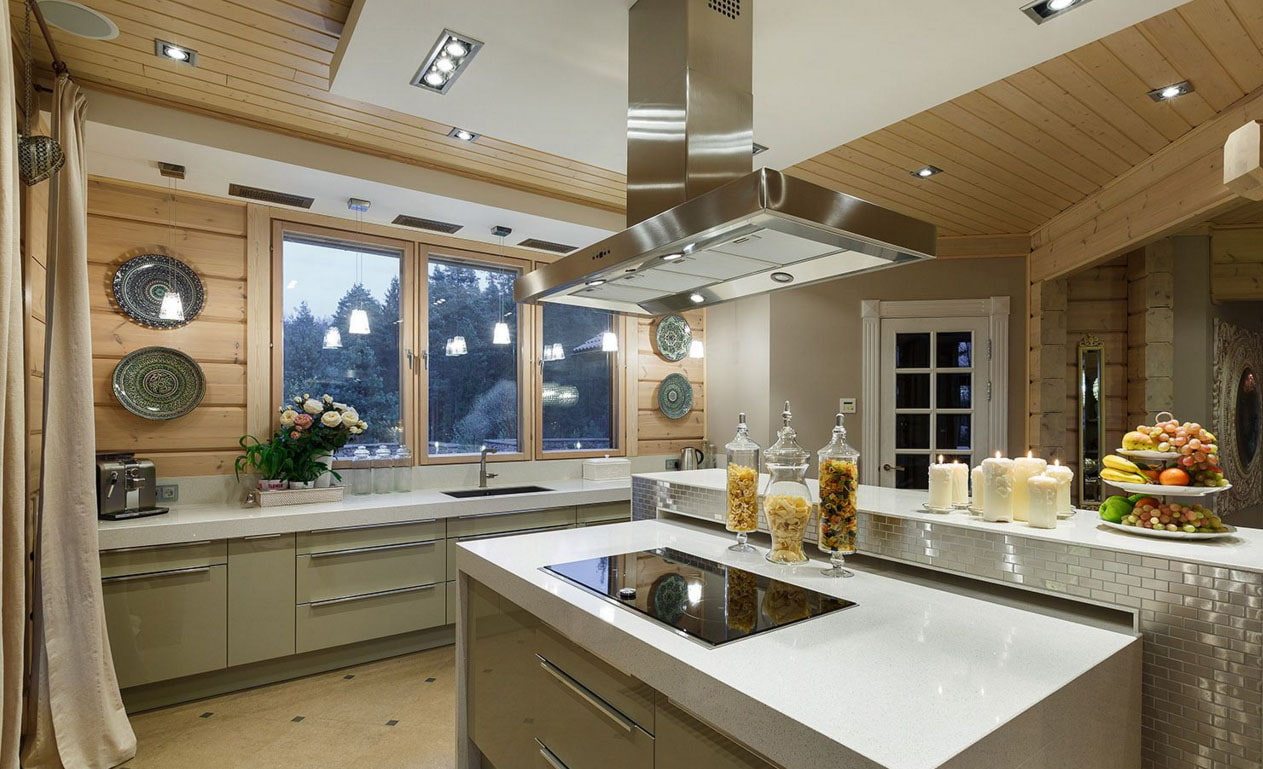 The interior of the kitchen in a wooden house depends on the style you choose, but any finish must meet the requirements: