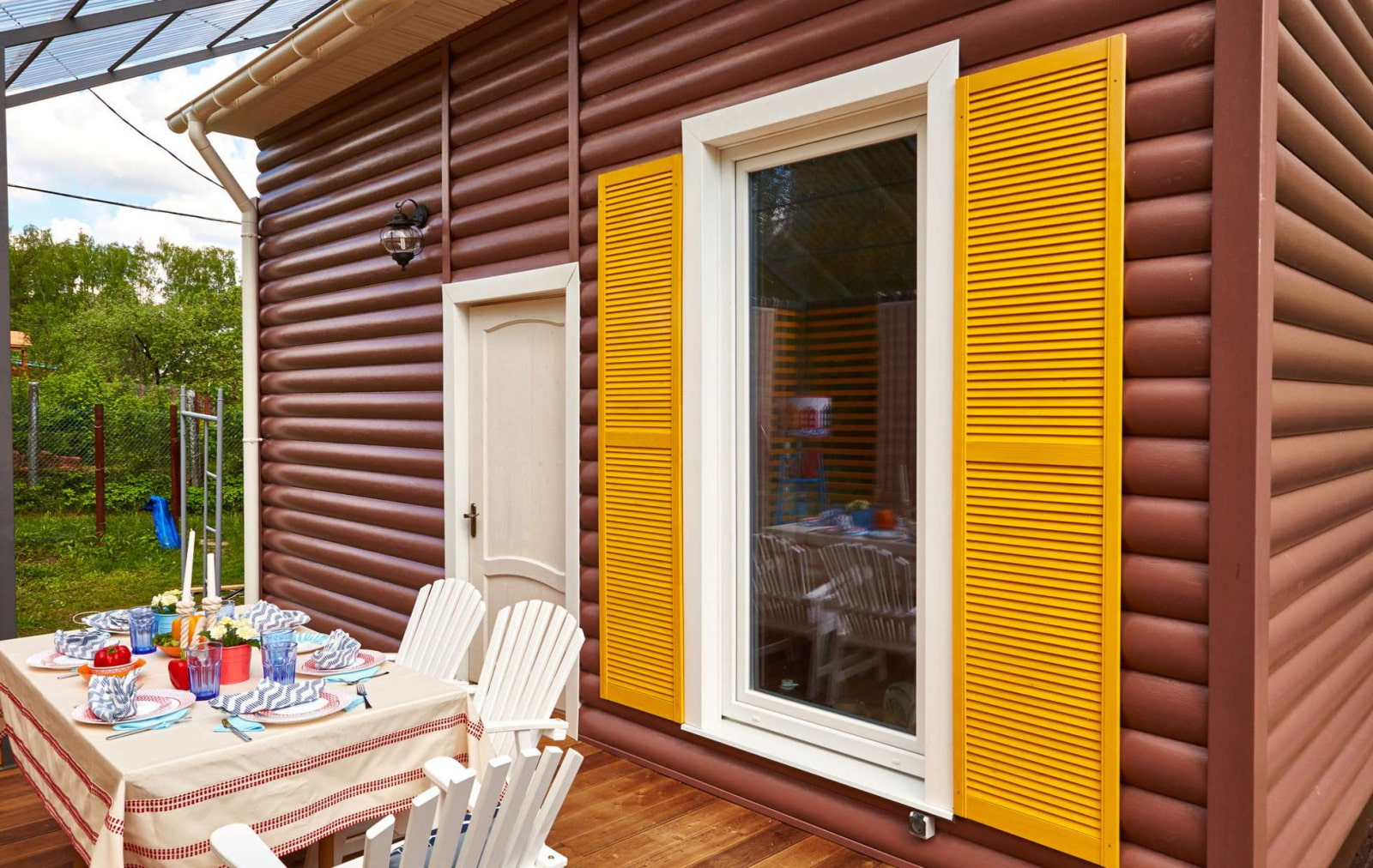 - If the walls of the summer kitchen are made of wood, they are finished with clapboard, timber or materials with imitation of natural texture.
