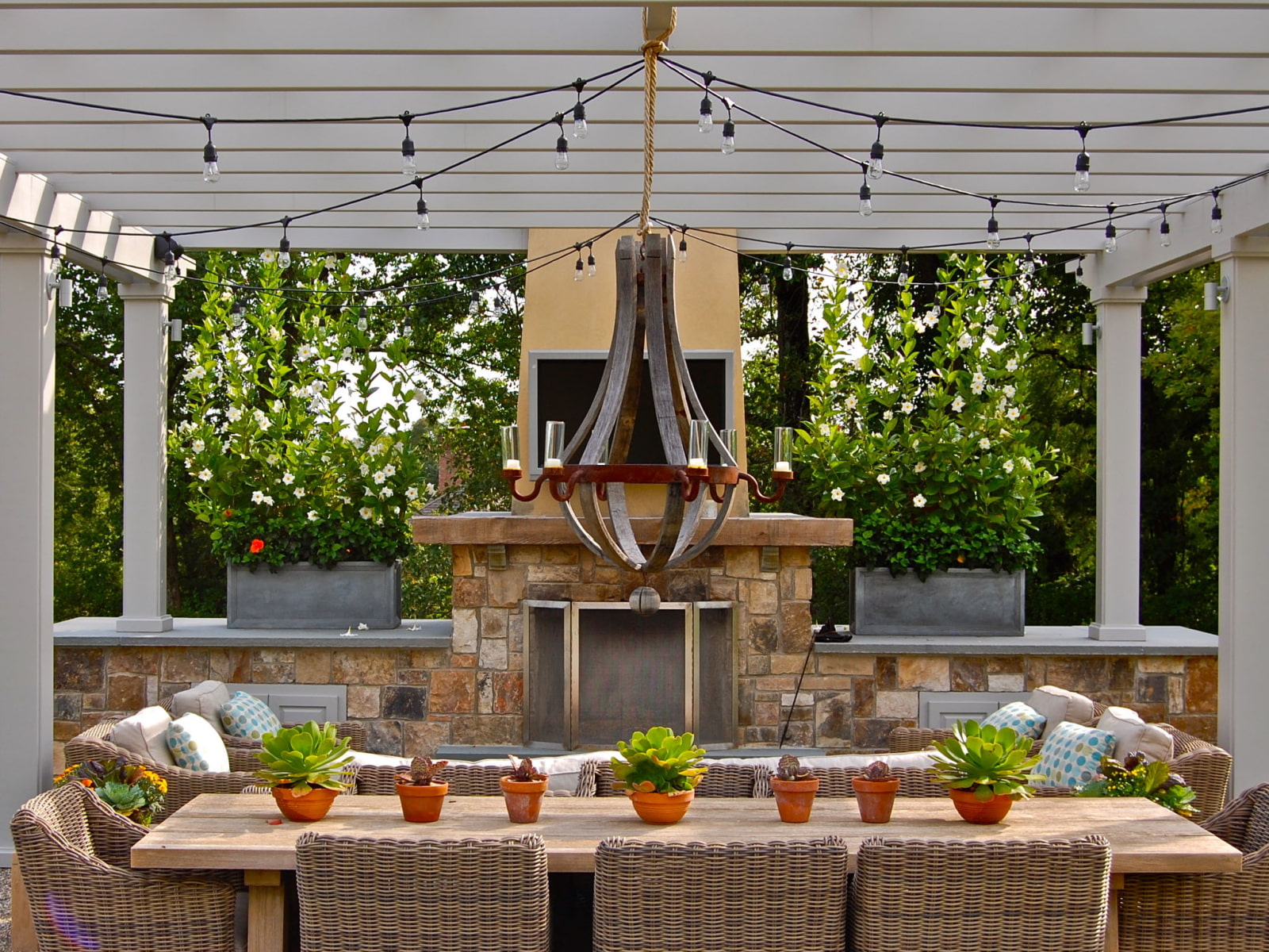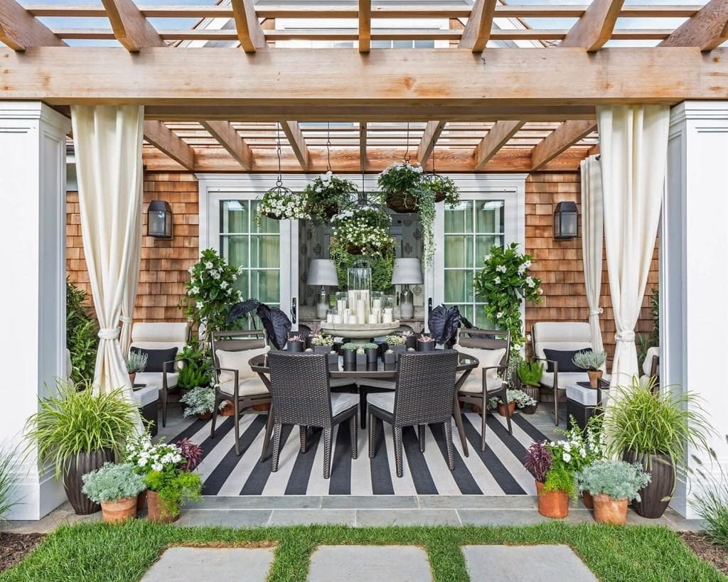 Still, the patio is part of the landscape, so plants are considered its main decoration.