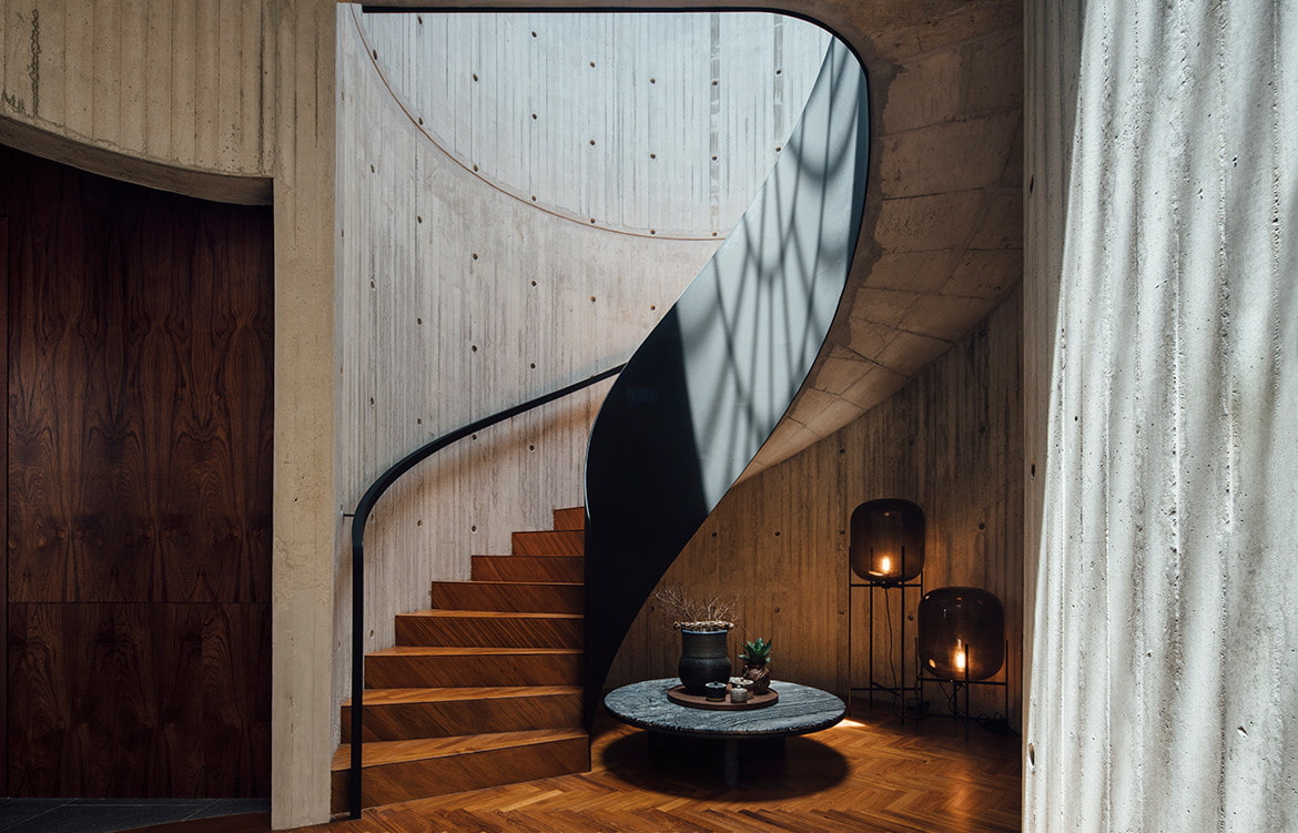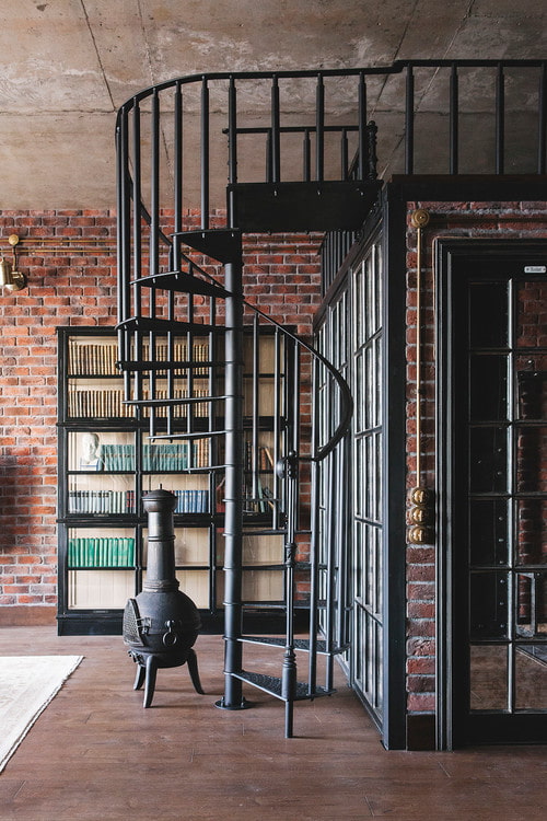 In the photo, a spiral air staircase