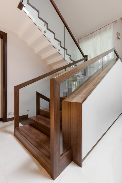Glass looks best in combination with wooden steps - you get a stylish, eco-friendly tandem.