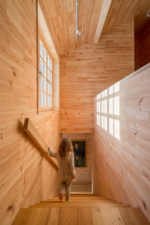 In the photo, the wooden decor of the house