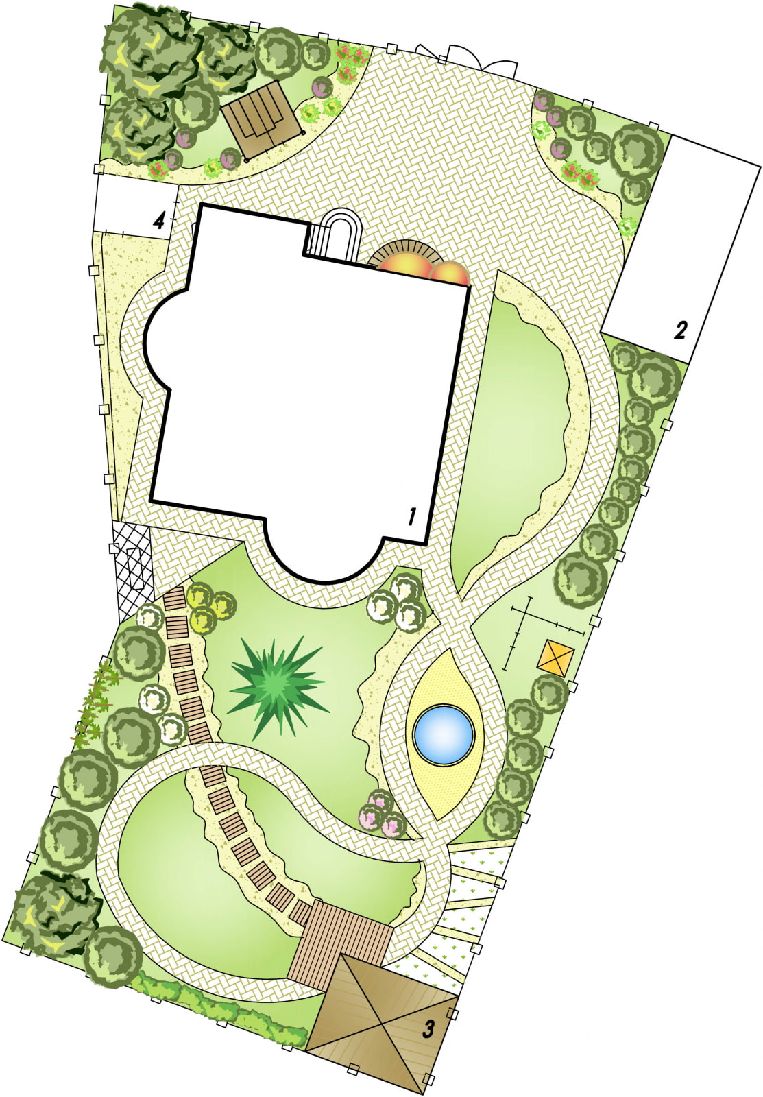 Besides square or rectangular, there are also triangular and even circular areas! They are considered the most difficult to plan. You cannot place a house in the center on a round or oval one - it will be impossible to divide the area around it correctly. Any of these forms is designed asymmetrically: if you are a beginner in landscape design, it is better to entrust this work to professionals.