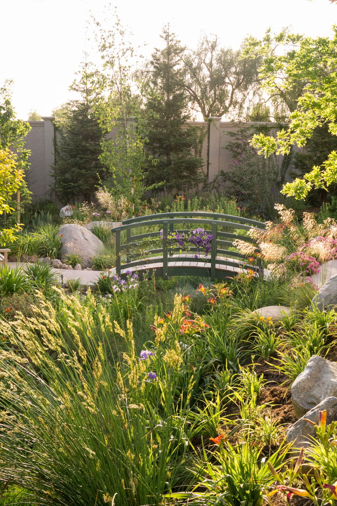 The banks and bends are ideal places for flower beds, benches and decorative sculptures. A winding stream visually increases the size of a small area, and a slightly deepened stream acts as a drainage groove for wet areas.