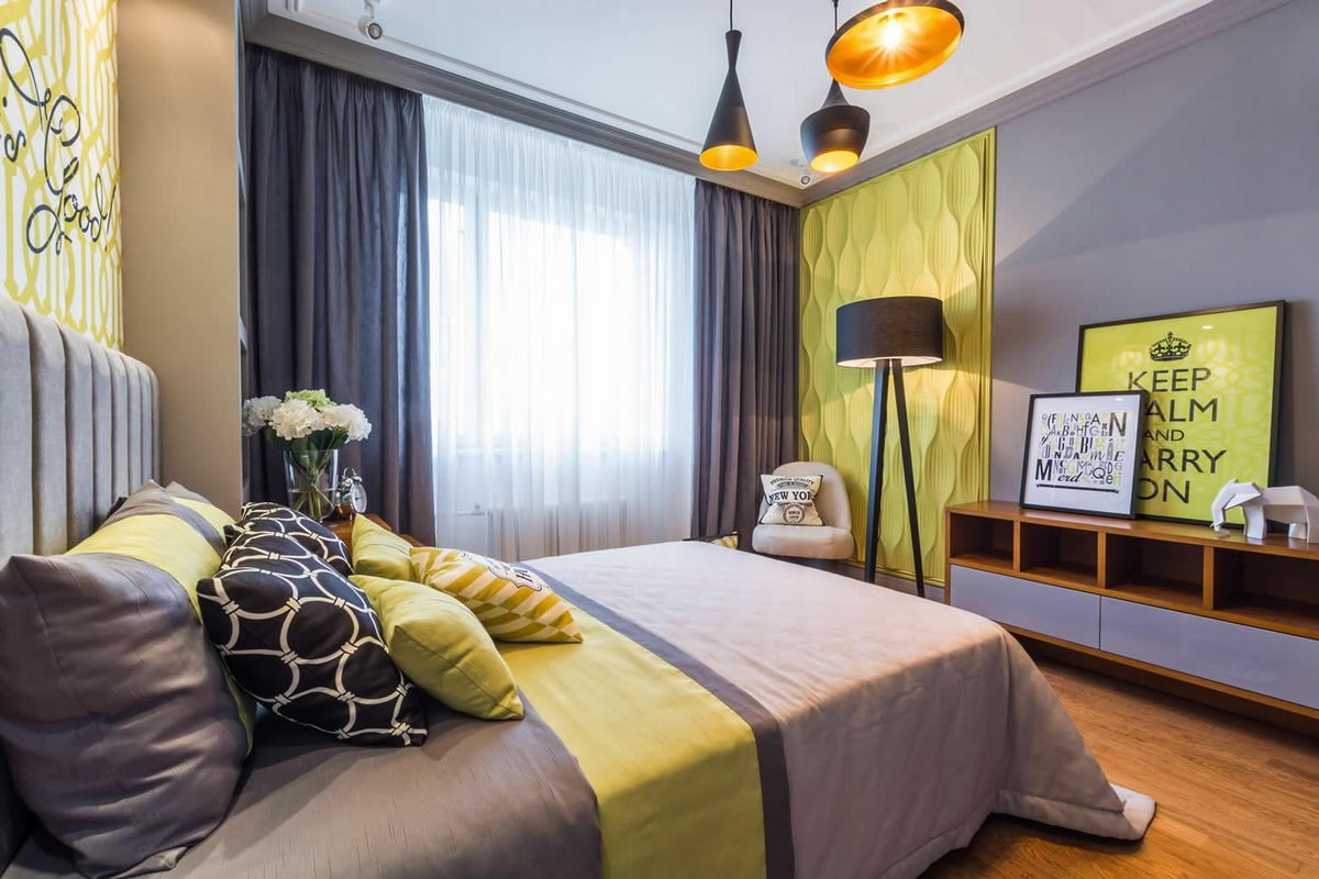Le jaune est considéré comme la couleur idéale pour diluer l'intérieur gris monotone. Quelles que soient les proportions de mélange, ces nuances sont combinées organiquement les unes aux autres et s'intègrent parfaitement dans le design de n'importe quelle pièce.