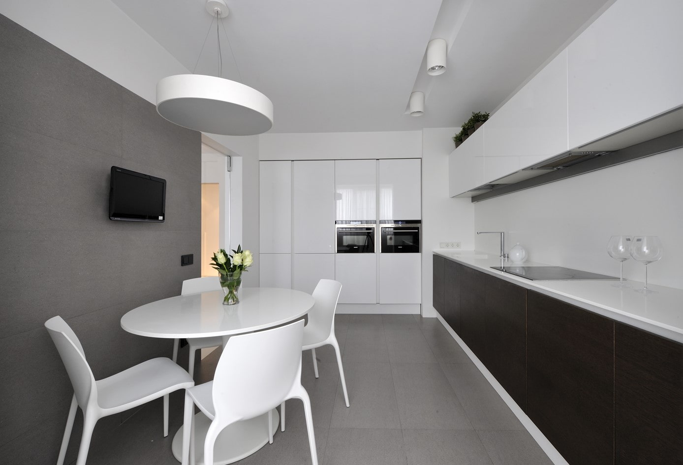 Le gris monochrome et atténué combiné à un turquoise rafraîchissant a un aspect très intéressant et est parfait pour ceux qui aiment les solutions intérieures non standard.
