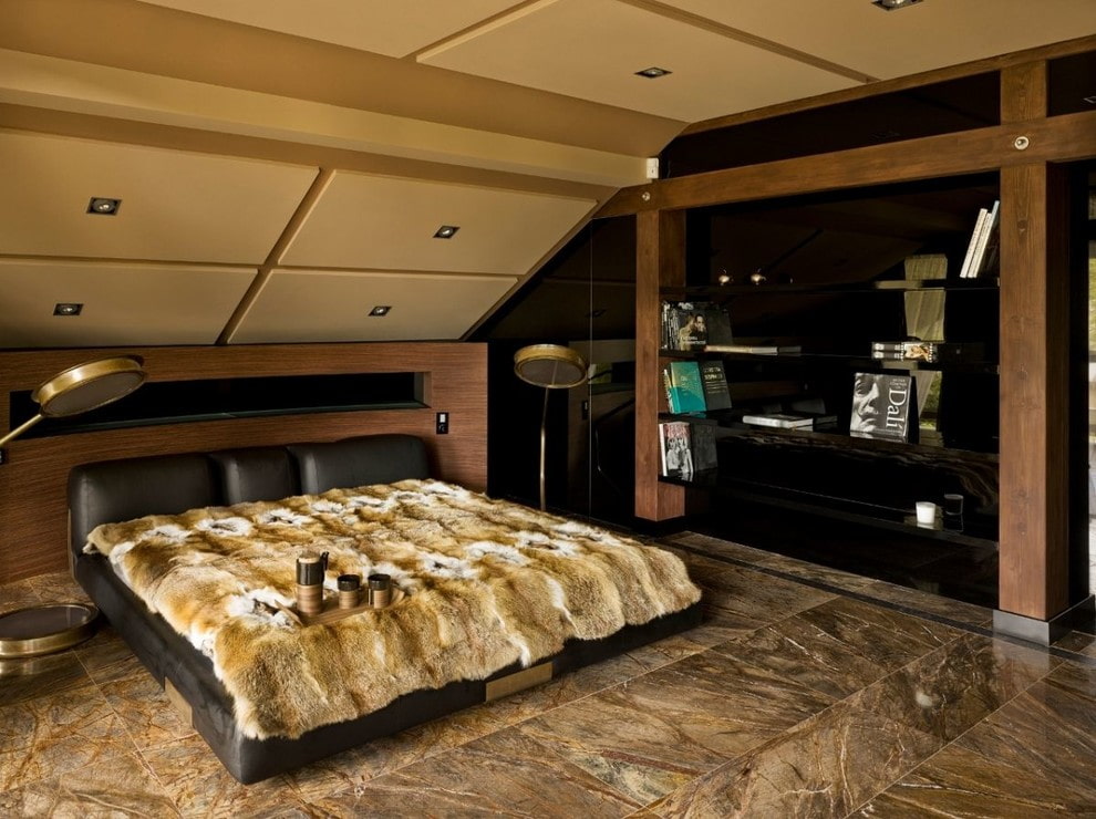 Tons de chocolate formam um interior lacônico e respeitável, tornando-o aconchegante e confortável.
