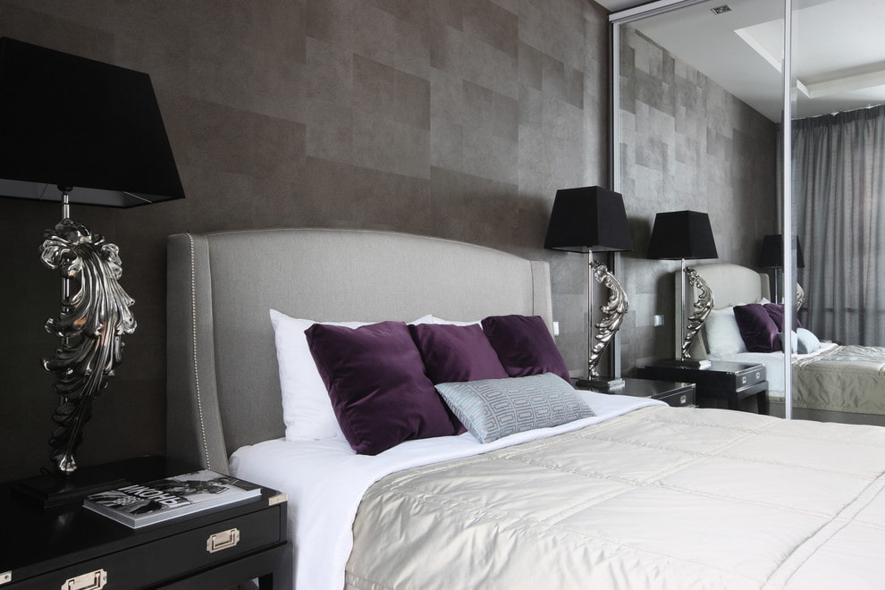 Doku ve desen, sakin bir yatak odası dekorasyonu için uygun olan yumuşak ve zar zor fark edilebilir olabilir veya belirgin vuruşlarla telaffuz edilebilir. Bu tip modern bir tasarımda iyi görünecek.